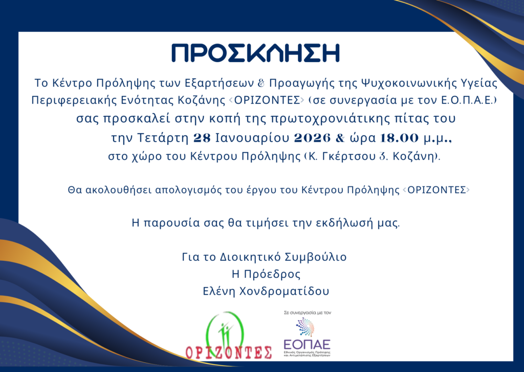 ΠΡΟΣΚΛΗΣΗ ΣΤΗ ΚΟΠΗ ΠΙΤΑΣ ΤΟΥ ΚΕΝΤΡΟΥ ΠΡΟΛΗΨΗΣ